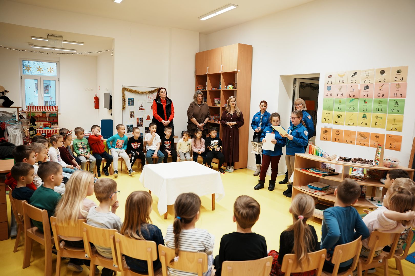 Tri dana uoči Božića, u ponedjeljak, 22. prosinca, Dječji vrtić Maslačak ispunio se radošću i blagdanskim duhom, kada su ga posjetile članice Odreda izviđača “Darko Tivanovac” – školarke Hana Varžić i Lana Greganić, u pratnji svojih voditeljica Eme i Aleksandre. U područnom odjelu u Belišću dočekale su ih vrtićke skupine Čarobnjaci i Vilenjaci zajedno sa svojim odgojiteljicama i odgojiteljima, stručnim timom i ravnateljicom Ivanom Belcar.